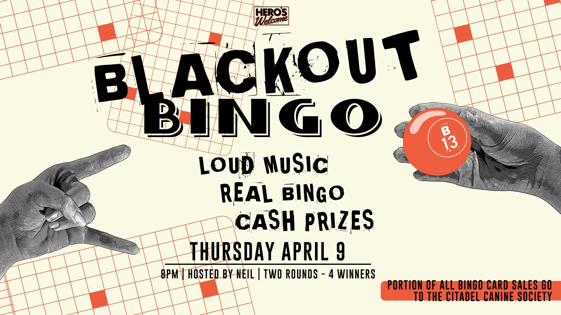 Bingo card sales will benefit our friends at the Citadel Canine Society.