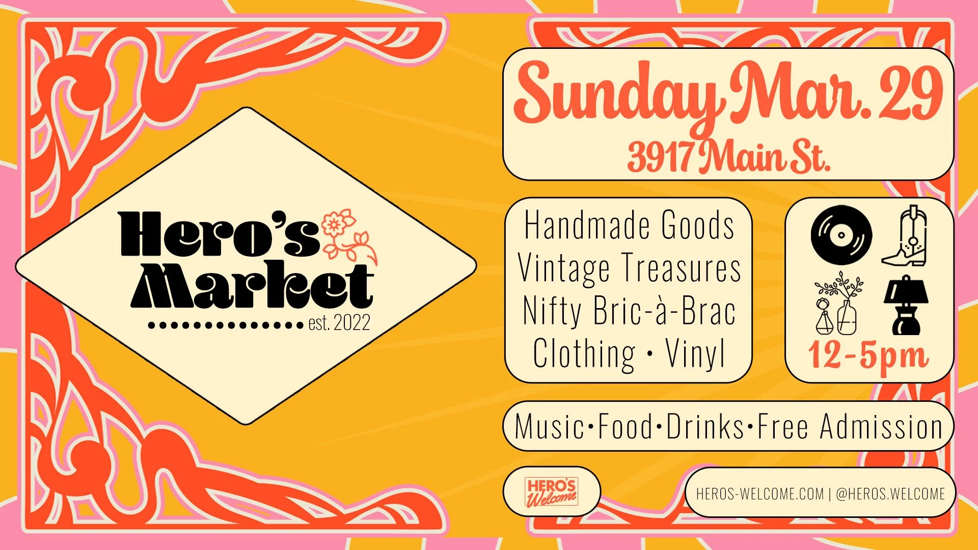 Join us for the first Hero’s Market of 2026! Featuring 15+ local vendors and artisans selling vintage clothing, housewares, jewelry, skin care, plants, crafts and more!