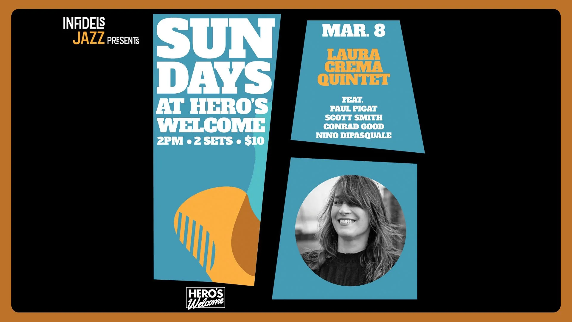 Infidels Jazz presents Sundays at Hero's Welcome - a bi-weekly jazz series featuring some of the best jazz in the city. The concept is to provide an affordable way for jazz lovers of all ages to gather and celebrate the music we love.
